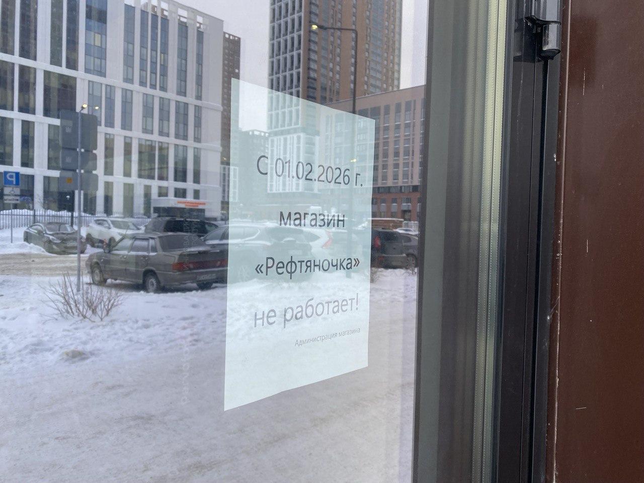 В микрорайоне Академический на улице Парина, 35/2 перестал работать фирменный магазин сети «Рефтяночка», принадлежащей птицефабрике «Рефтинской». Закрытие произошло 1 февраля, о чём сообщало объявление на входе, а вывеску с названием уже сняли.