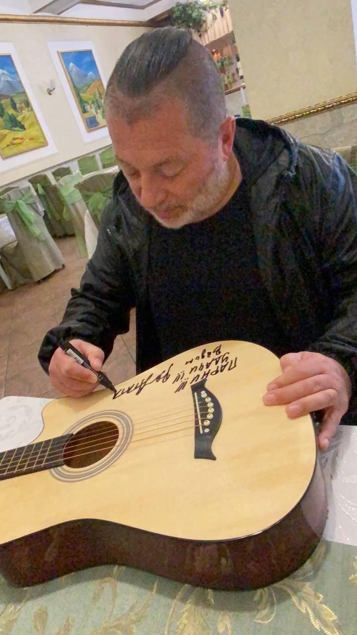 По ее словам, Вадим Самойлов лично подписал и передал две идентичные гитары организации ЖГУТ (Женская гвардия укрепления тыла). Один инструмент отправили военнослужащим на СВО для поднятия патриотического духа, а второй разыграли на благотворительном аукционе.