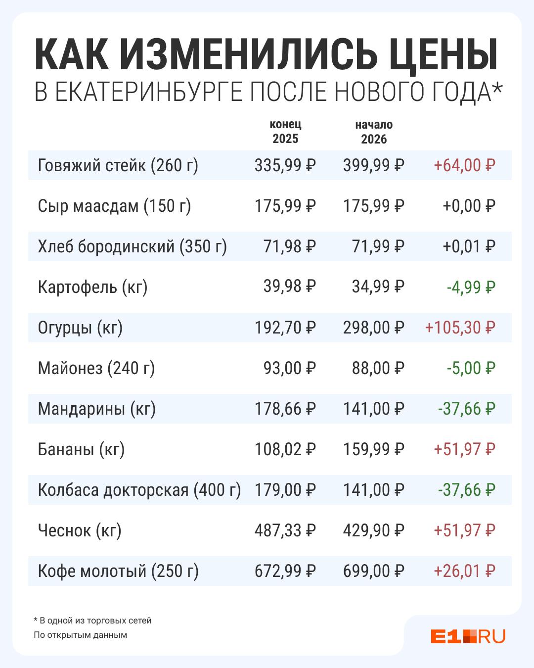 В анализ включили покупки, сделанные екатеринбуржцами в последние дни декабря в магазинах одной из торговых сетей города. Спустя две недели проверили текущие цены на те же товары.