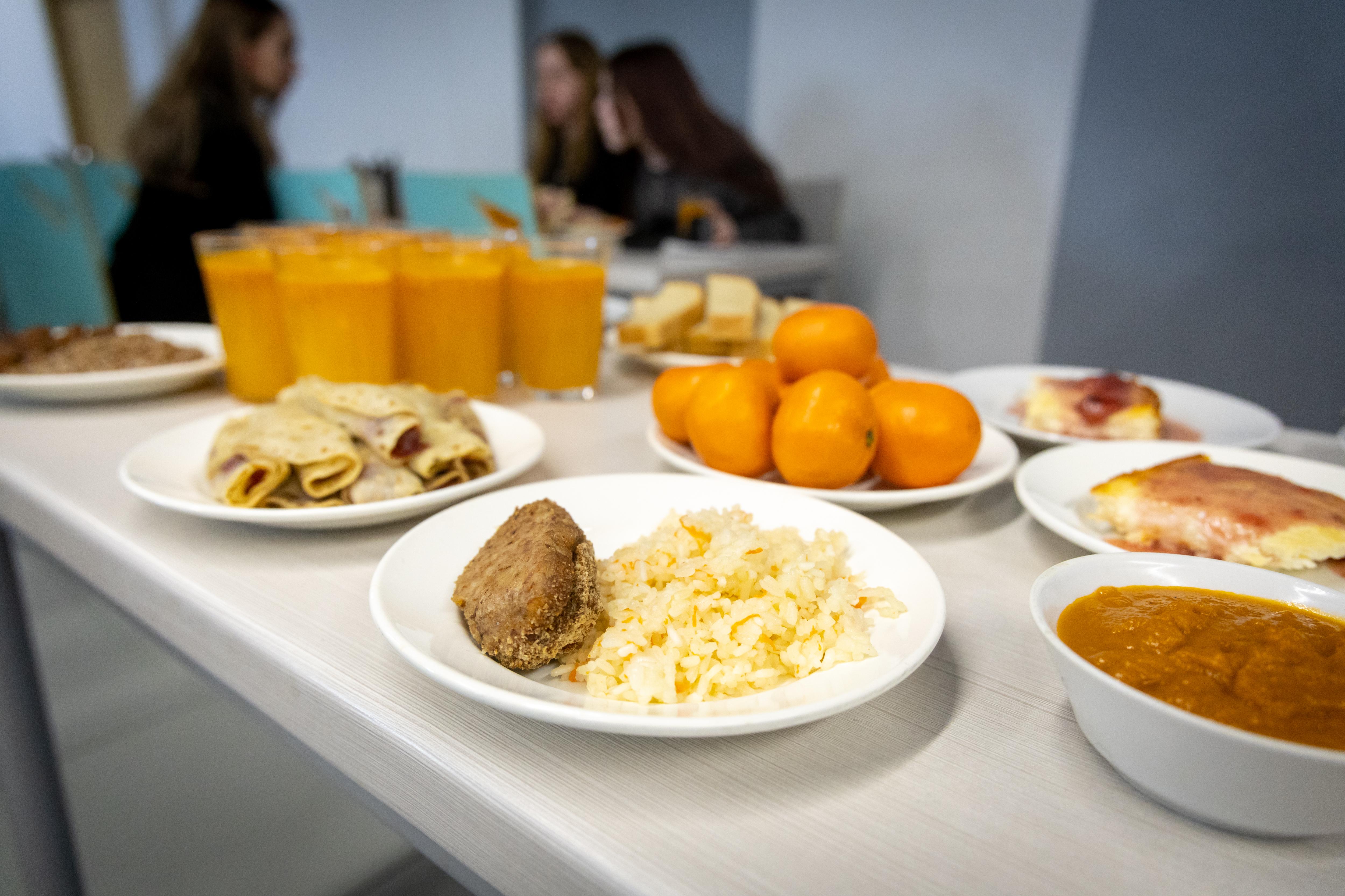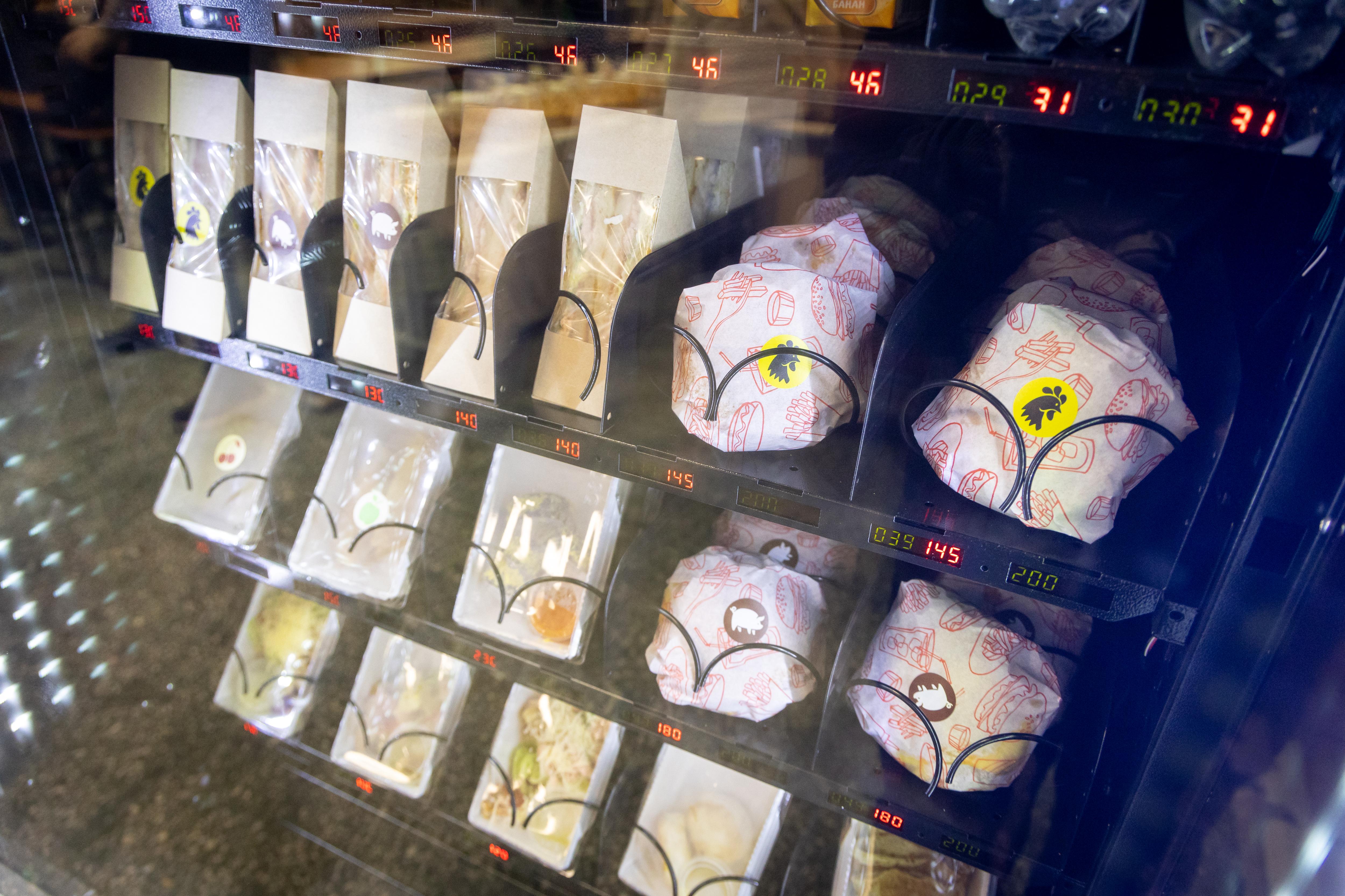 Выбор между упакованной едой из автомата и горячими блюдами из столовой