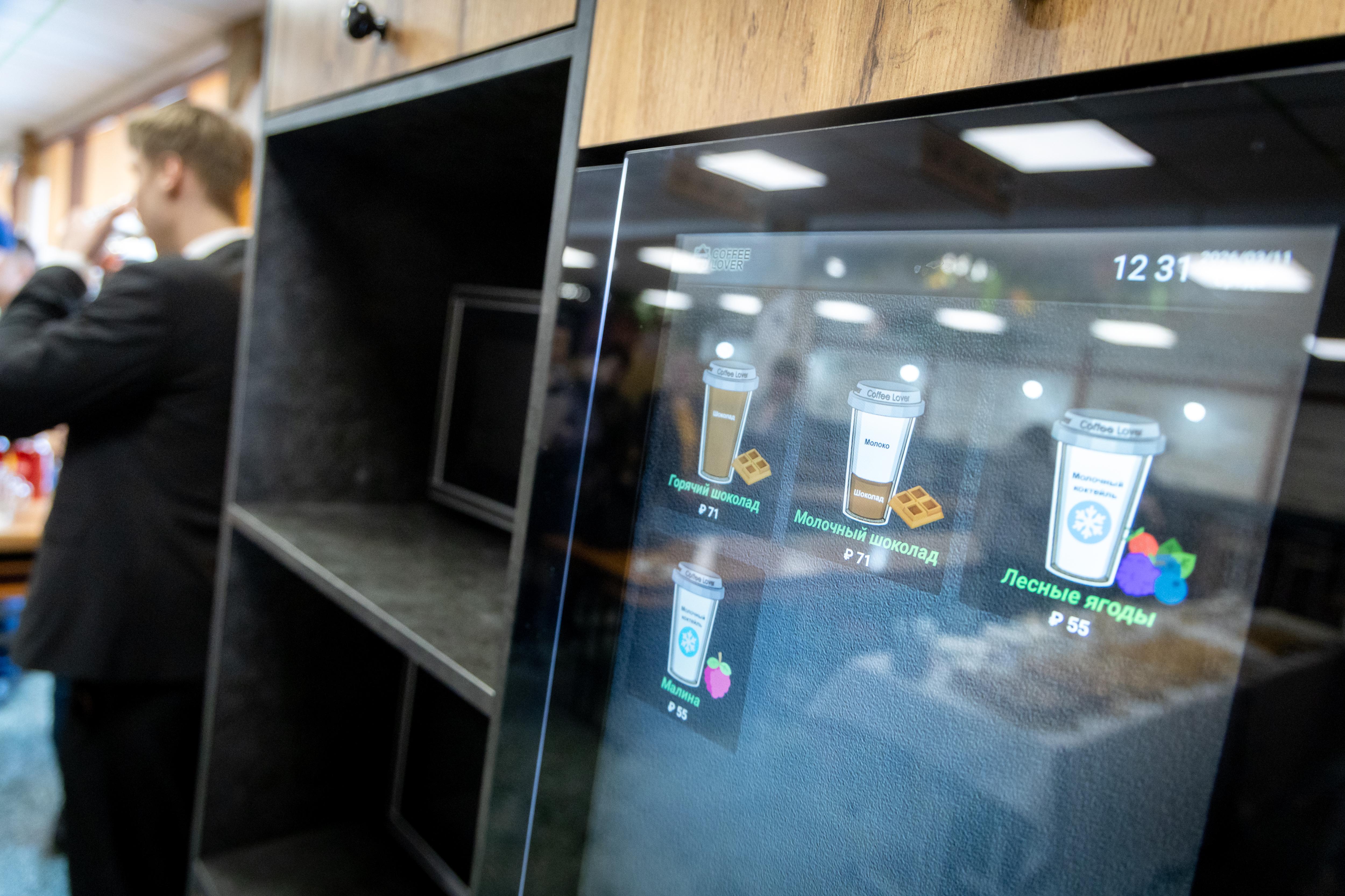 В холле школы установлен автомат другого формата. В нём представлены бургеры, сэндвичи, соки и молочные коктейли.