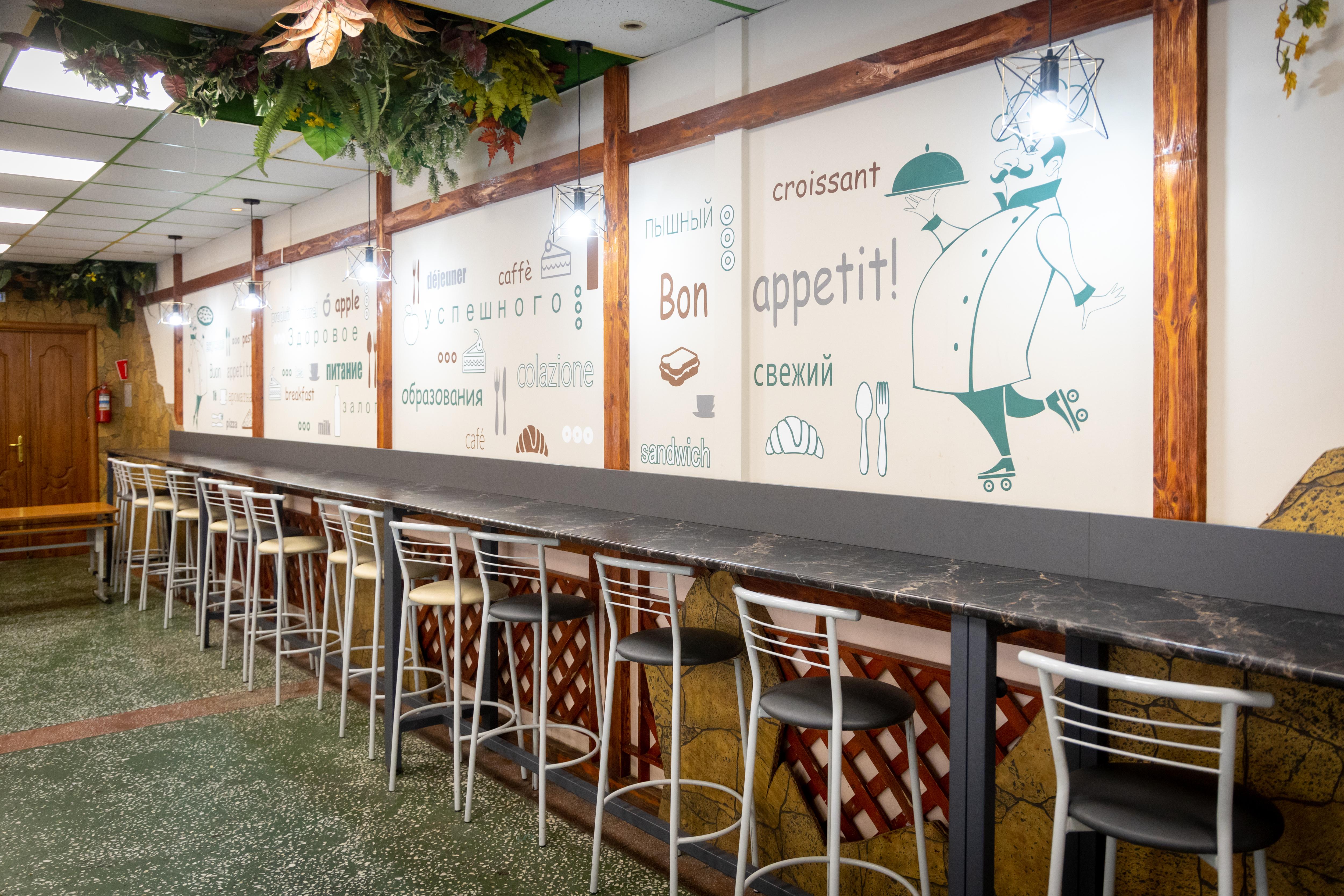 В этом же учебном заведении для детей оборудована барная стойка. Она предназначена для быстрых перекусов в перерывах между уроками.