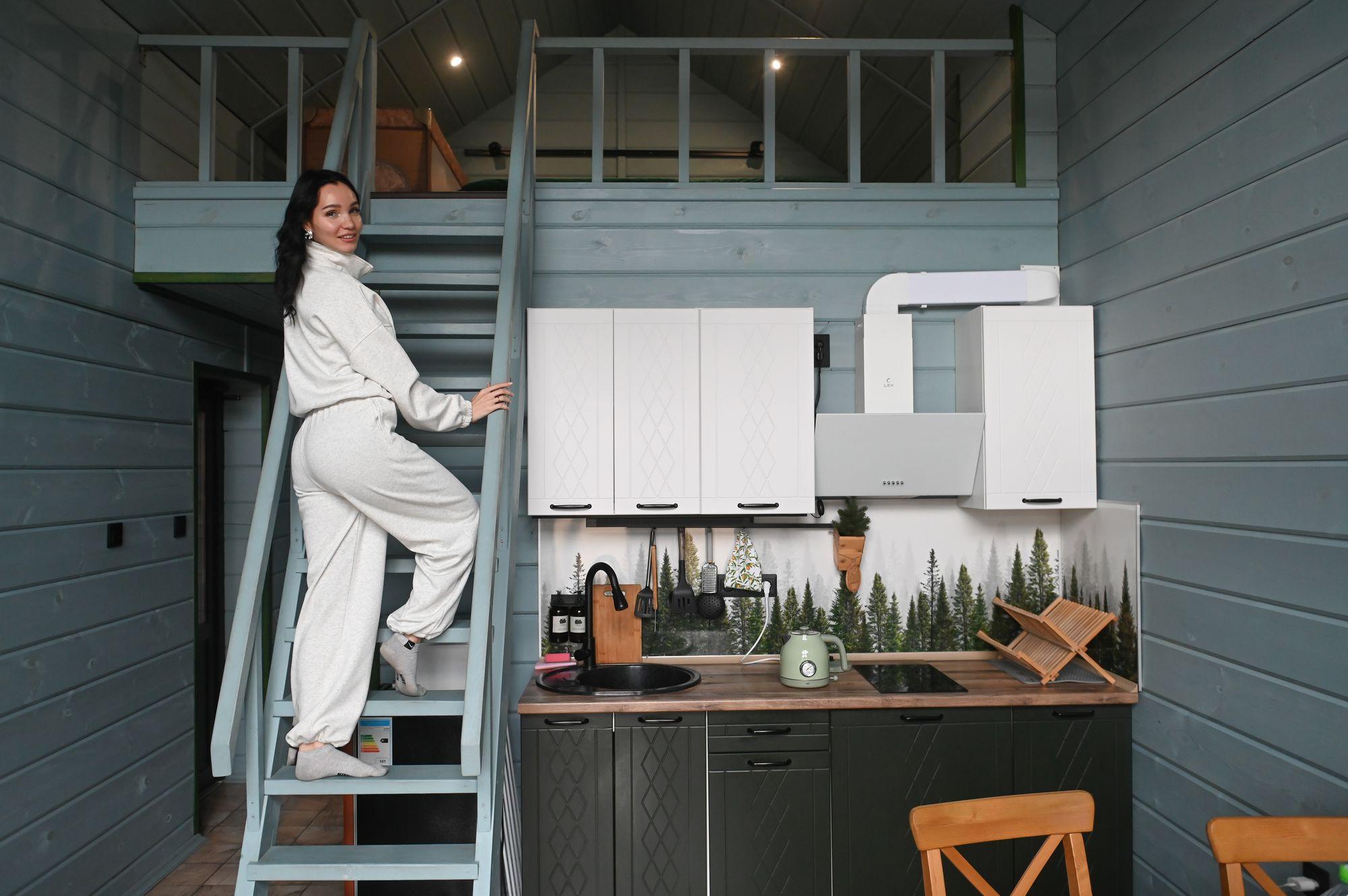На территории можно арендовать большую студию, двухкомнатный дом или дом-студию. Аренда последнего варианта, представленного на фото, в будни составляет 4700 рублей, а в выходные — 5700 рублей.