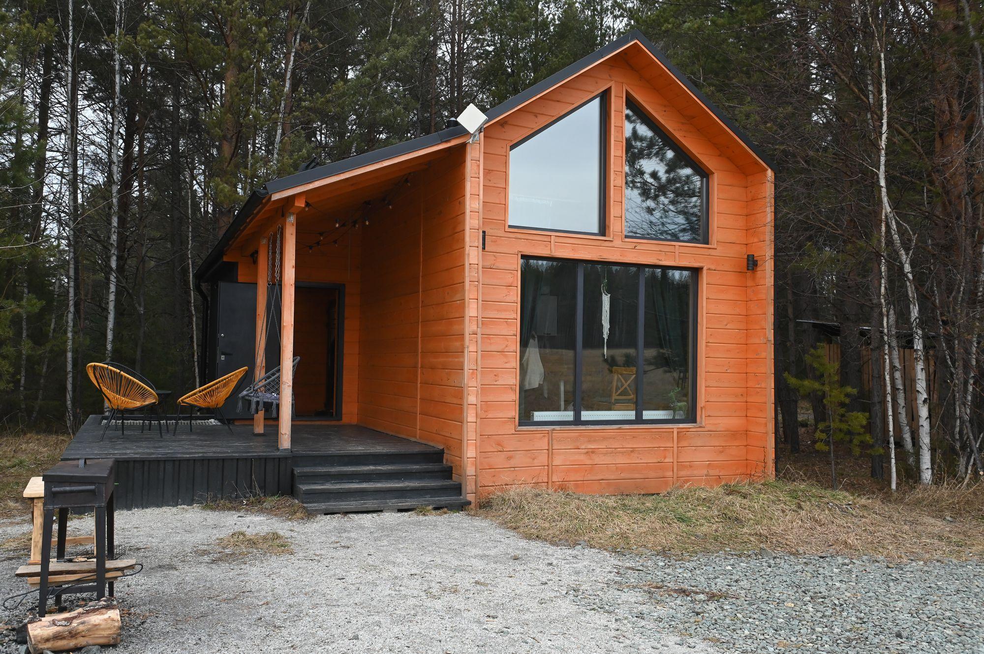 Внутри домика — большие панорамные окна