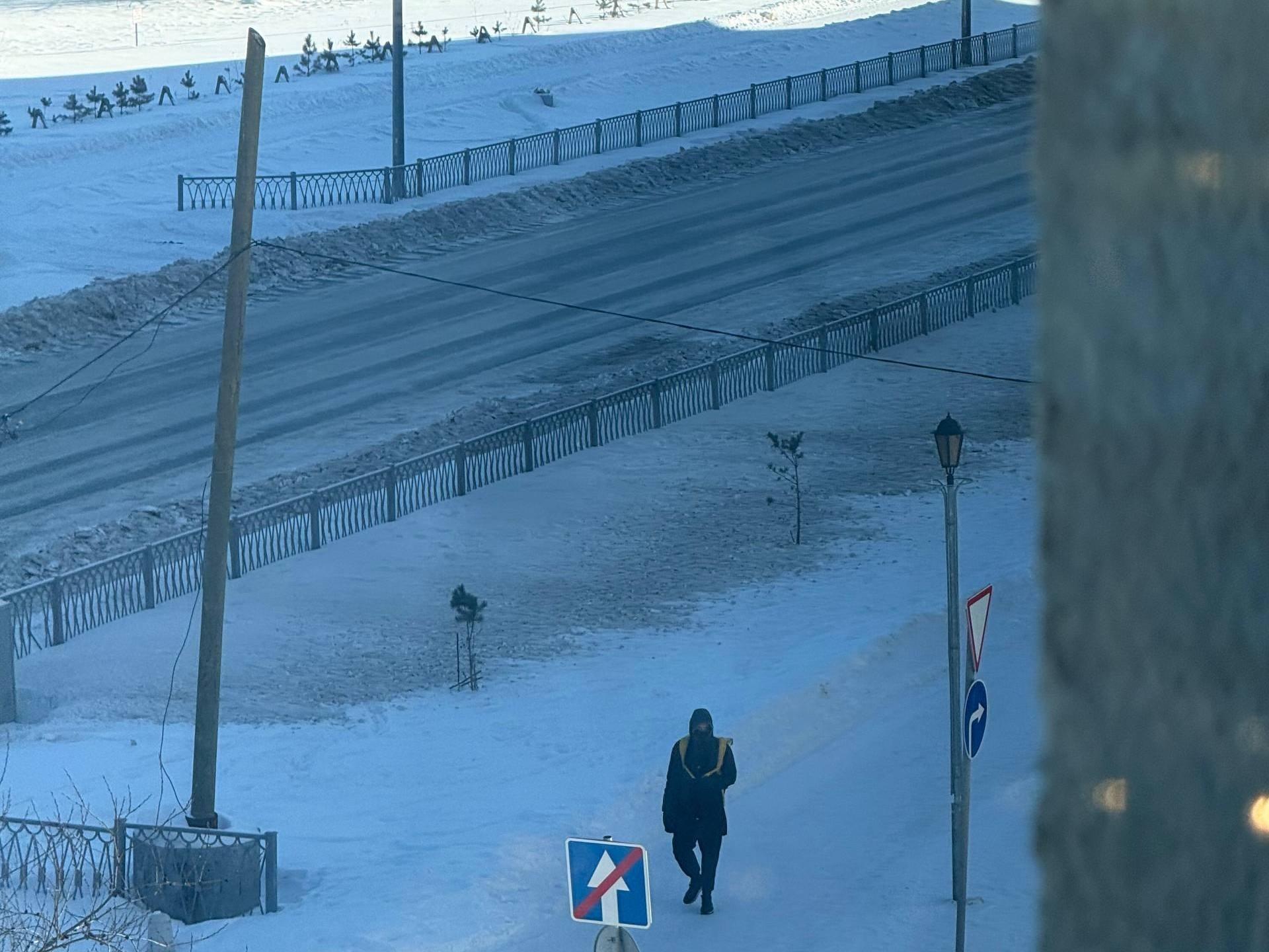 На этом снимке грязный снег не долетел до тротуара, однако в других точках района картина была иной.