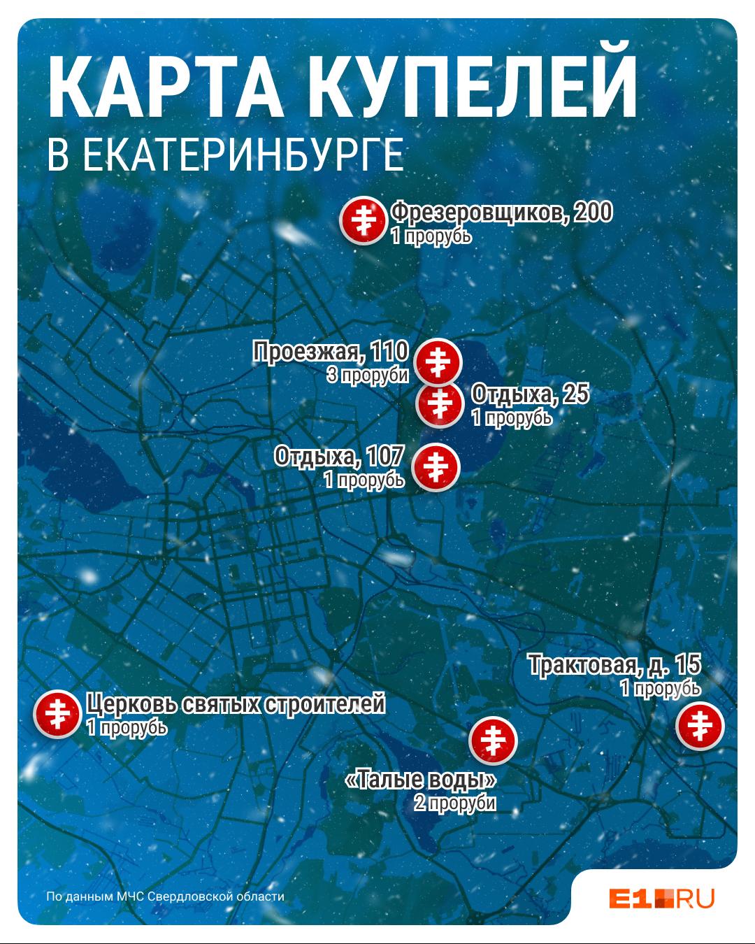 На карте отмечены все официальные крещенские купели Екатеринбурга.