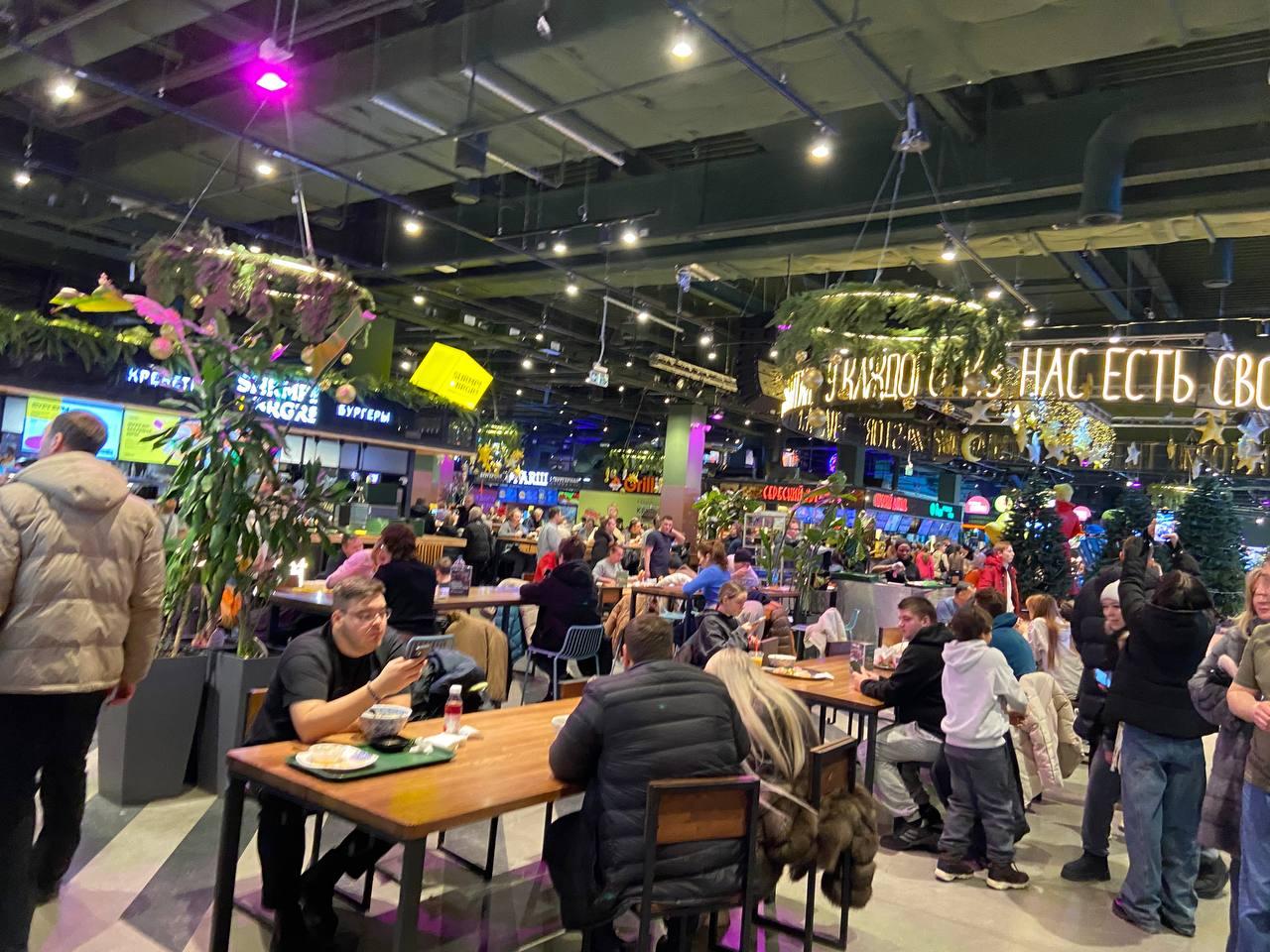 На фудкорте также отмечается большое количество посетителей.