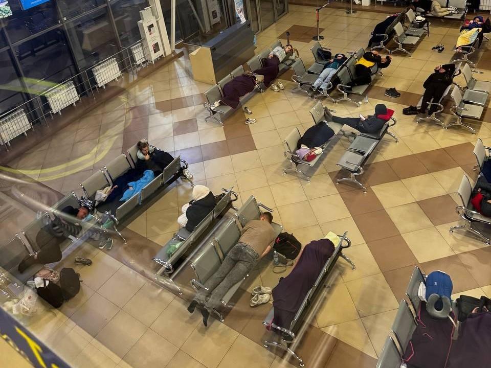 Сотни человек остаются в аэропорту, не имея возможности вернуться домой.