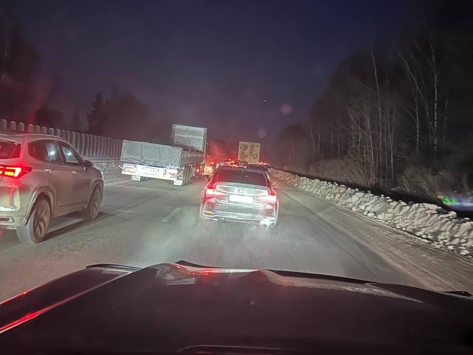 Утром 15 января движение на дублере Сибирского тракта было полностью заблокировано из-за пробки, протяженностью семь километров. Затор возник после столкновения микроавтобуса «Газель» с грузовым автомобилем.