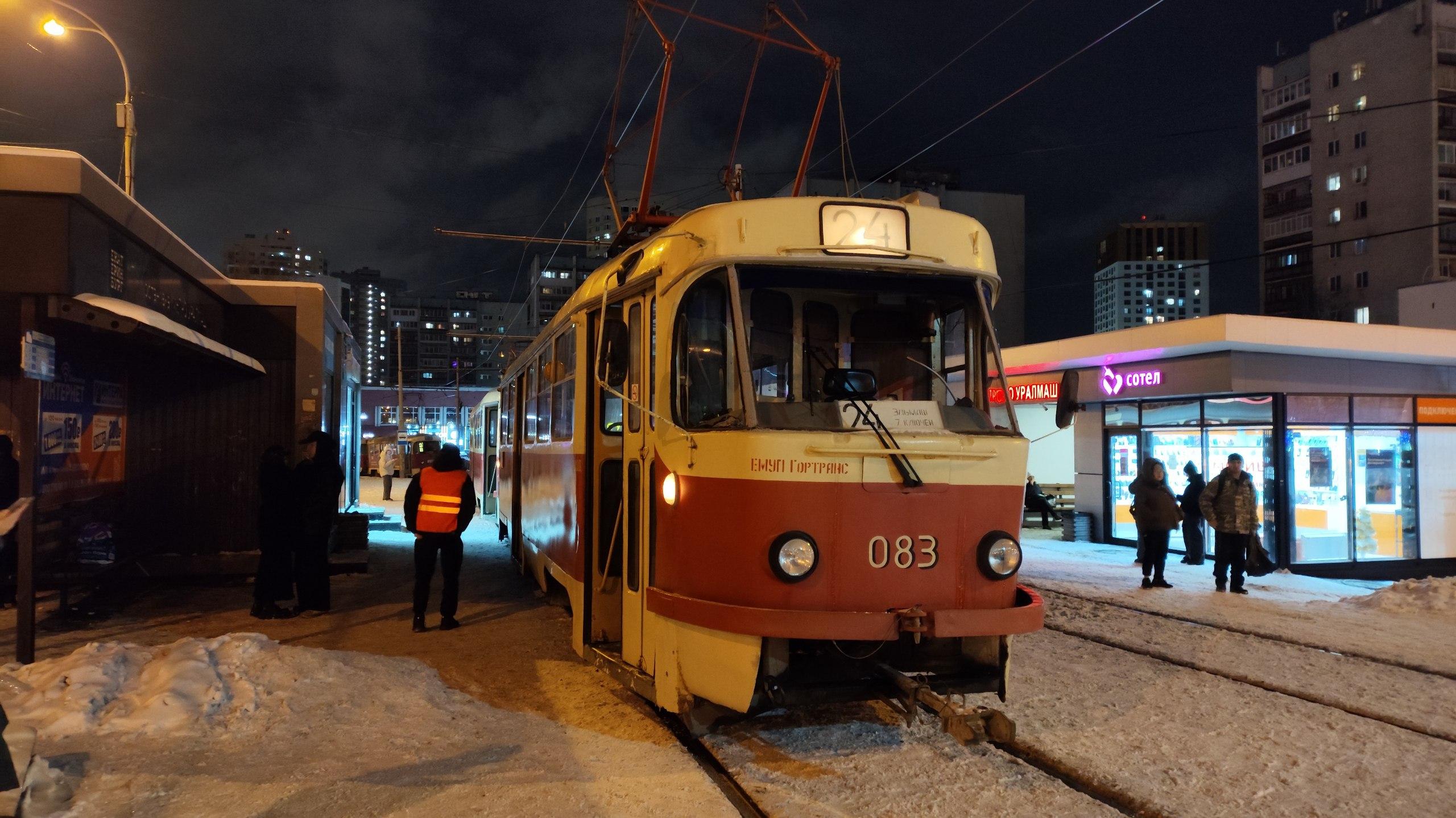 Пять трамвайных составов остановились на остановке «Метро Уралмаш»