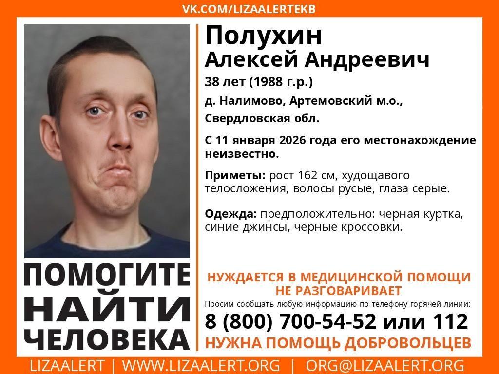 Поисково-спасательный отряд «ЛизаАлерт» объявил о розыске жителя Свердловской области Алексея Полухина.