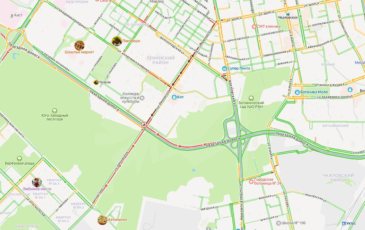 Сервисы картографии фиксируют дорожно-транспортное происшествие на пересечении Амундсена с Объездной, которое, предположительно, и стало причиной образования затора. В пресс-службе городской Госавтоинспекции подтвердили факт аварии, отметив, что в ней никто не пострадал. В ведомстве призвали автомобилистов соблюдать правила дорожного движения.