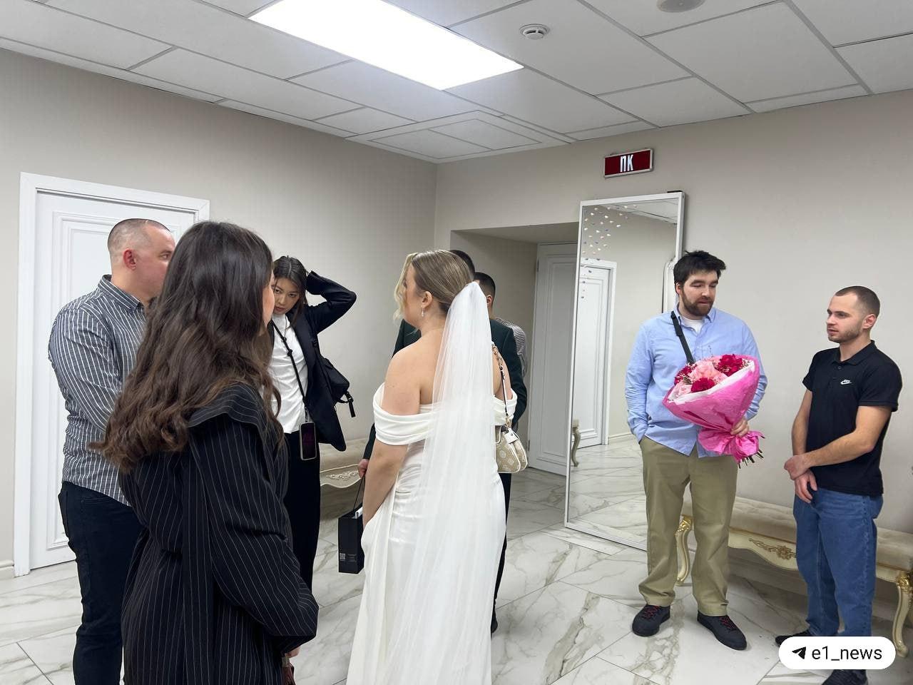 «Все решили жениться, в гардеробе аншлаг. Говорят, что сегодня много людей из-за даты. Народ переходил на второй этаж, внизу очень тесно!» — поделилась одна из присутствовавших на церемонии.