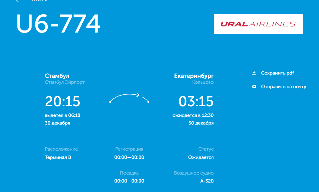 Представители пресс-службы «Уральских авиалиний» заявили: «Рейс U6-774 по маршруту Стамбул — Екатеринбург за 29 декабря, время вылета которого ранее было перенесено на более позднее, отправлен из аэропорта Стамбула в 06:19. Номер рейса не менялся. Воздушное судно, выполняющее рейс, прибыло в Стамбул из Сочи с задержкой по метеоусловиям. Авиакомпания предоставила пассажирам все положенные услуги».