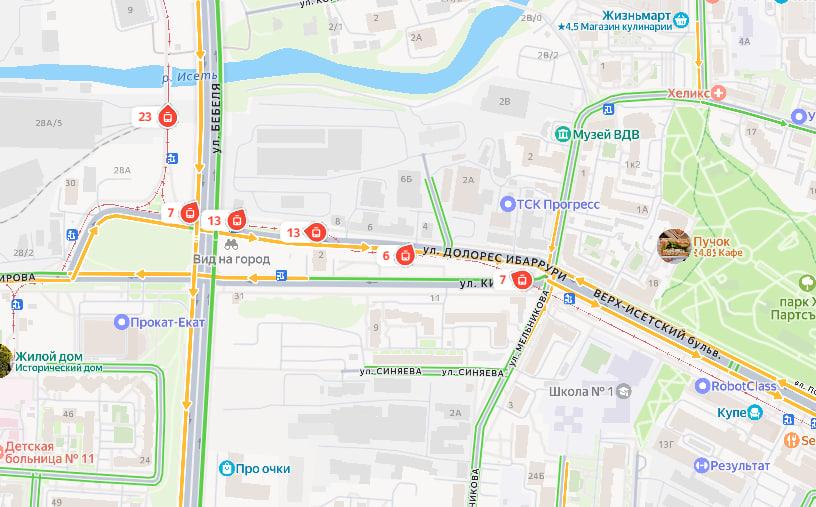 Инцидент произошел на улице Доллорес Ибаррури в районе остановки Крылова. С рельсов сошел новый трамвай модели «Кастор», следующий по маршруту №6. В результате движение трамваев №7, 10, 13, 21 и 23 в направлении центра Екатеринбурга было приостановлено.