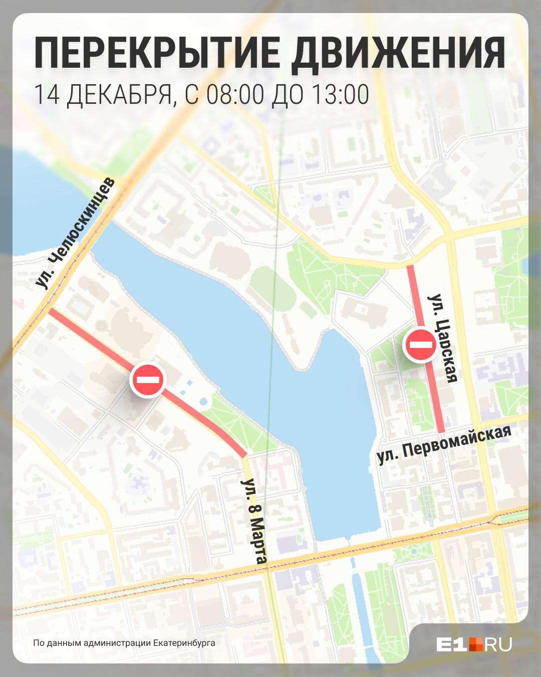 На карте перекрытый участок улицы Бориса Ельцина был изображен неточно. В мэрии уточнили, что ограничения также затронут улицу 8 Марта до проспекта Ленина.