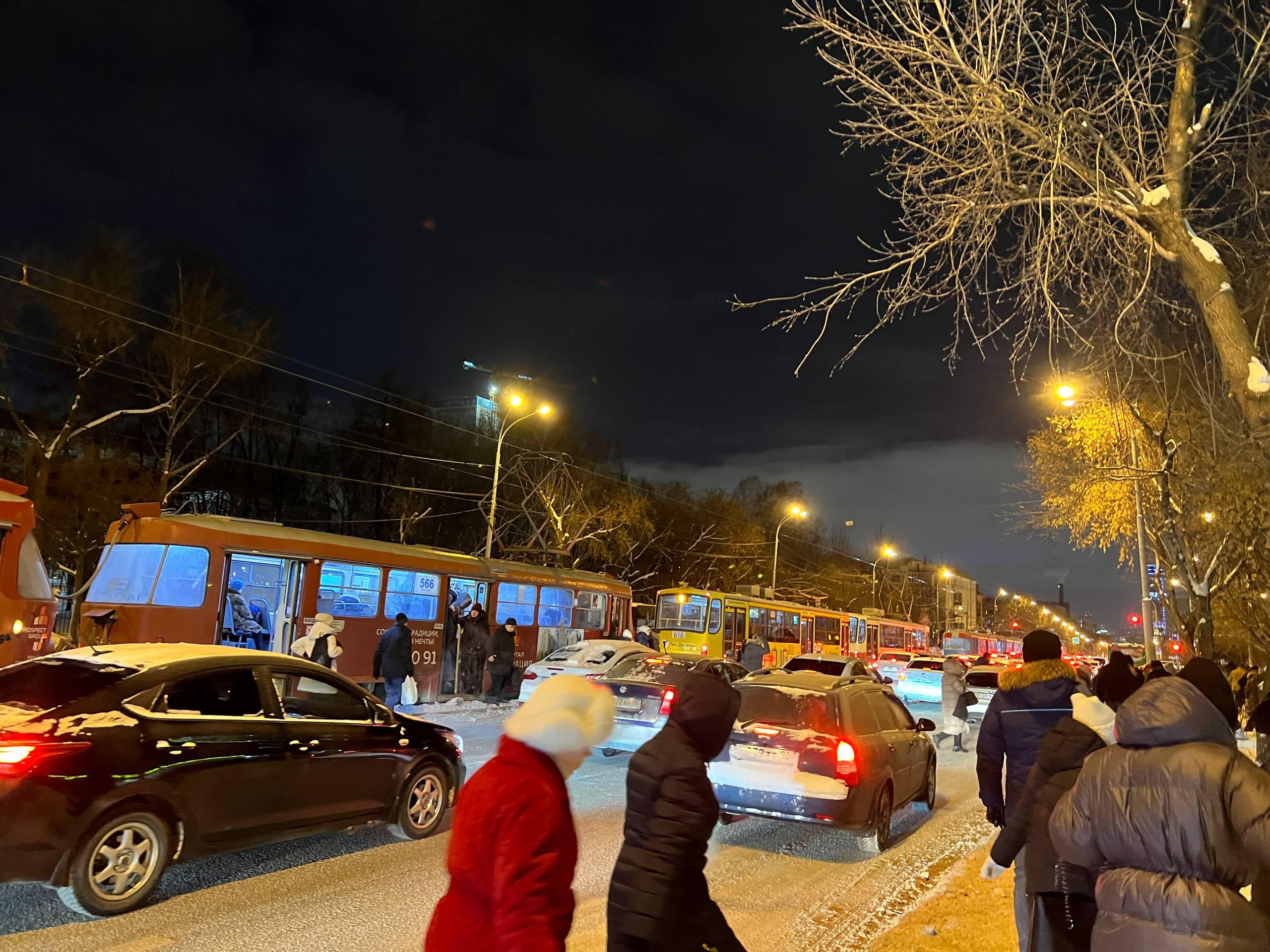 Накануне утром, 16 декабря, движение трамваев на улице Челюскинцев также было прервано на целый час. Остановку вызвала авария, полностью парализовавшая проезд для вагонов.